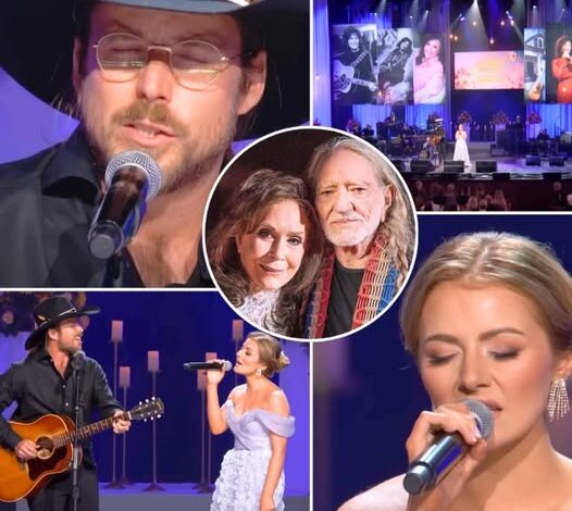 Then, from the shadows, Loretta’s granddaughter stepped forward. Emmy’s hands trembled as she held her guitar — the same model her grandmother had used decades ago. Beside her stood Lukas Nelson, the son of Willie, a man whose father had shared that sacred duet with Loretta long ago.
