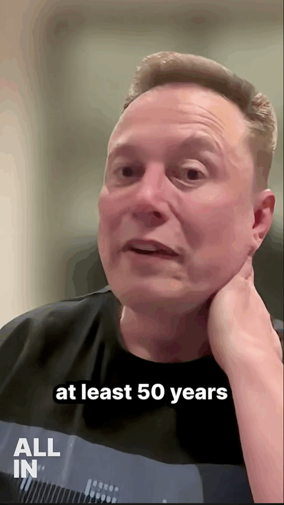 Then Musk positions himself as the “sensible moderate” in the middle—and arbitrarily declares the tipping point is fifty years from now. The problem? Real science doesn’t recognize his fantasy timeline.