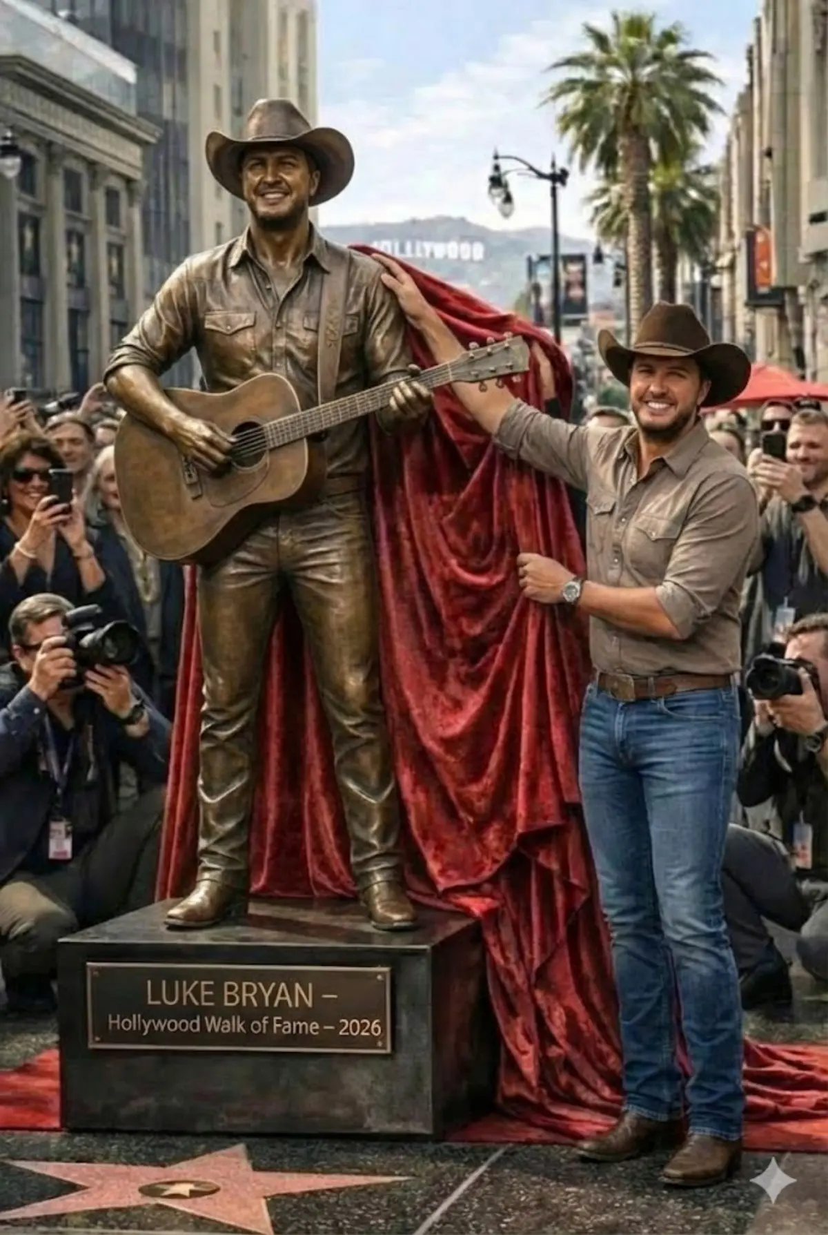 In an emotional ceremony that nearly brought Hollywood Boulevard to a standstill, Luke Bryan created a new and unprecedented milestone in entertainment history: he became the first country artist ever honored with a full-body bronze statue on the Hollywood Walk of Fame—an honor that goes far beyond the iconic star plaque that has defined recognition on the boulevard for decades.