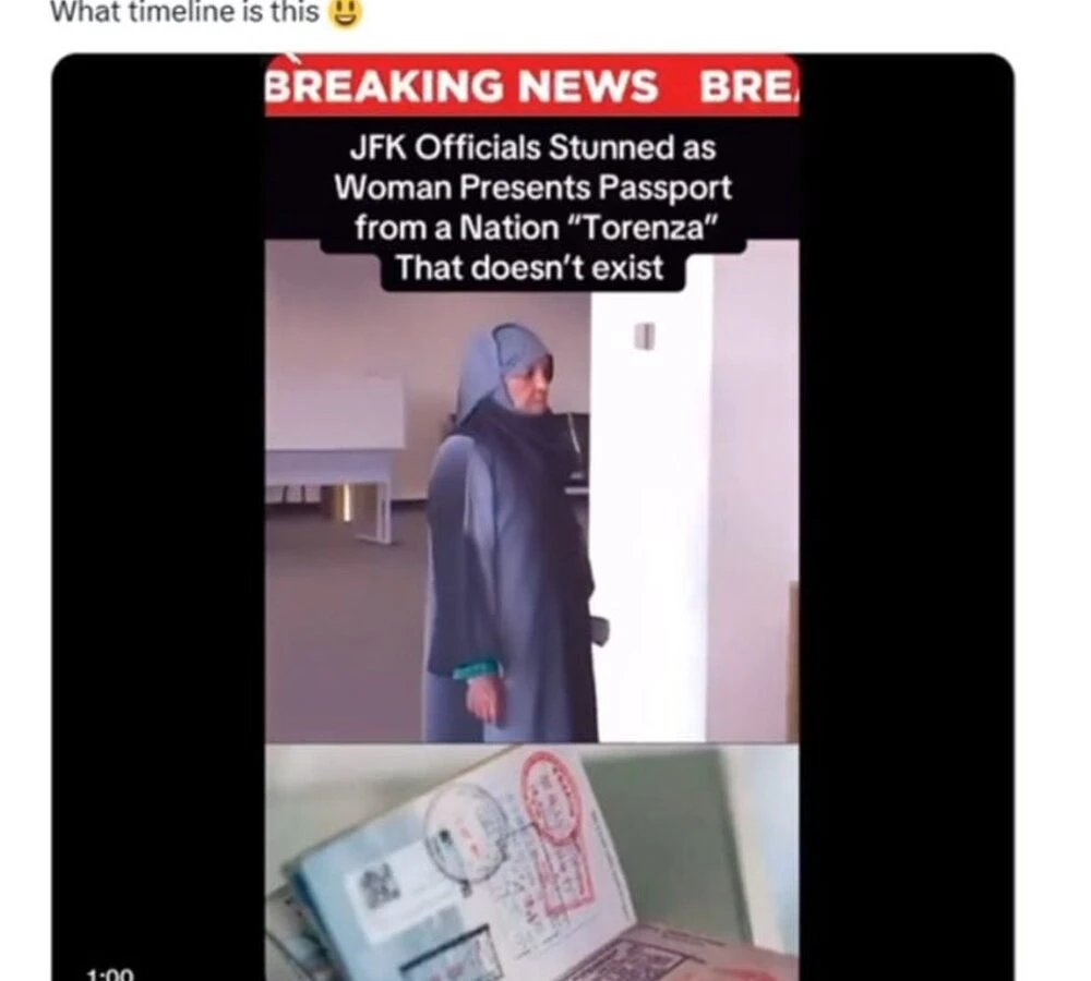 (New York, USA) — A strange story is making the American social network stir: a mysterious woman was detained at JFK International Airport after presenting a passport with the name of the country “Torenza” — a country that does not exist on any map of the Earth.