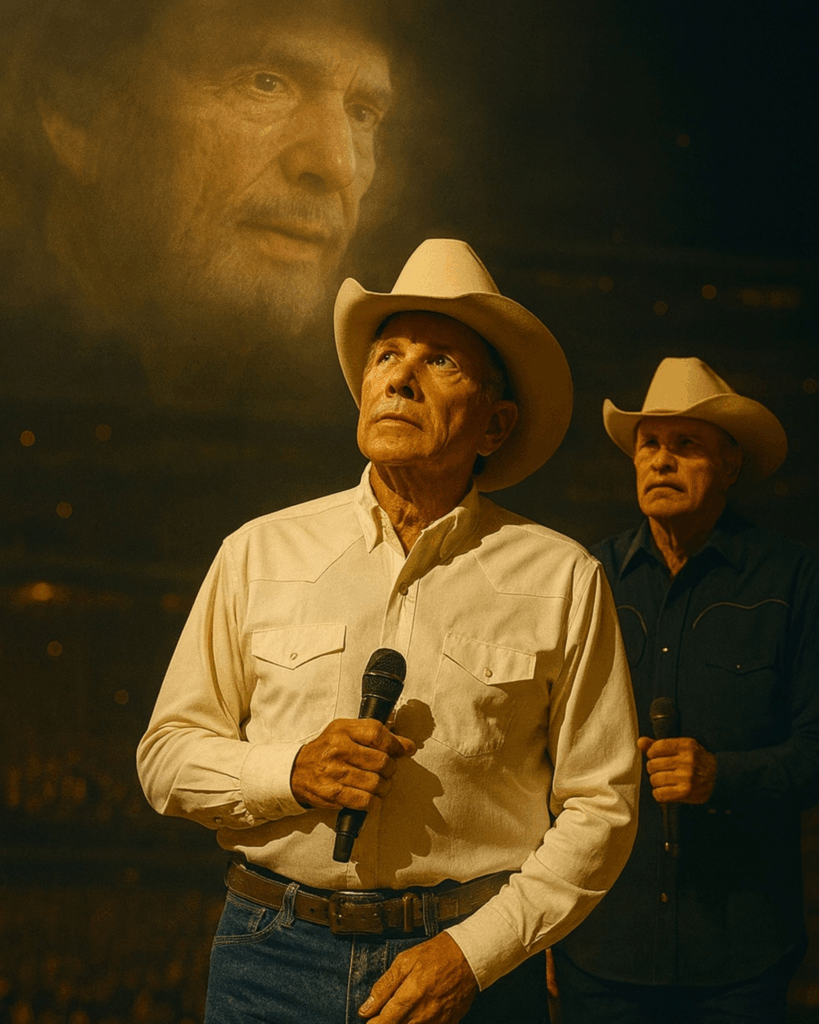 To the crowd, it was more than a passing tribute. It was a reminder that country music is a family, one built on sweat, heartache, and the voices of those who came before. Merle Haggard — outlaw poet, rebel soul — had been gone from the stage for years, but in that moment, his shadow seemed to walk alongside George and Alan.