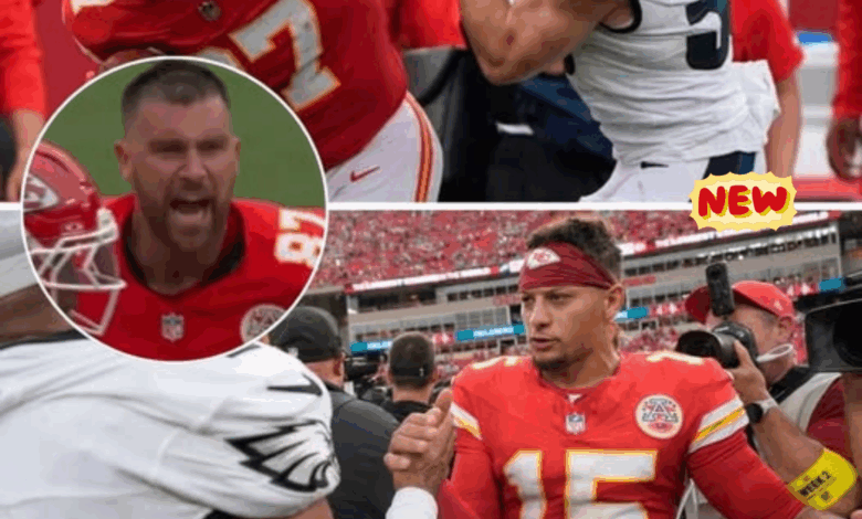 f.HOT: Travis Kelce suddenly erupted in fury, throwing his helmet and shouting in frustration at Patrick Mahomes right on the field.f