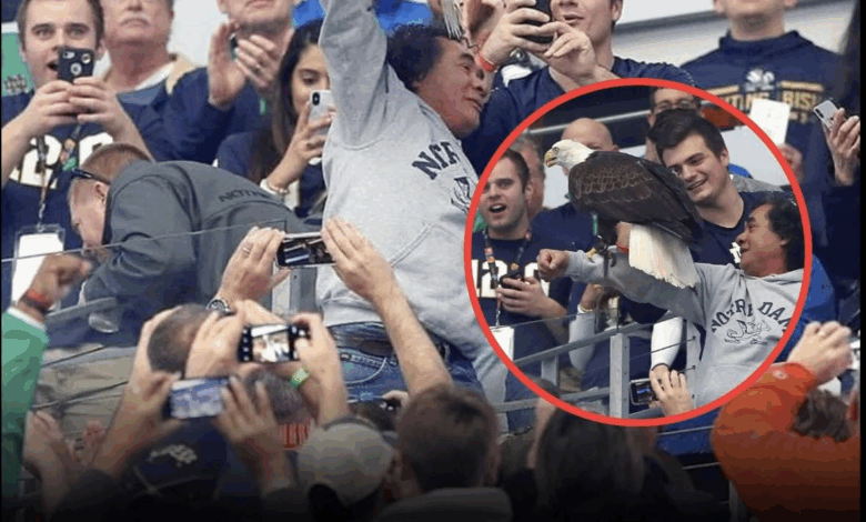 During a recent college football game, what was supposed to be a routine pregame flight by a majestic bald eagle turned into a transformative moment when the bird unexpectedly flew over the vast crowd and gently perched on the arm of the only Native American person present. Amid thousands of spectators, the eagle’s choice sparked gasps and profound reflections, highlighting Native American presence in a space where it is often overlooked or marginalized.