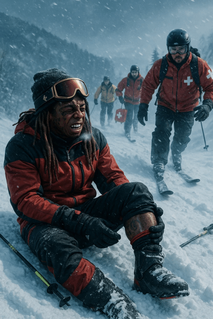 But within minutes, the smooth ride turned into chaos. As he picked up speed on one of the icy downhill trails, Wayne reportedly lost control after hitting a hard patch of snow. Cameras caught the shocking moment the rapper tumbled and landed awkwardly on his knee before sliding several feet across the slope. The crowd nearby gasped as ski patrol rushed to his aid, pulling him from the cold snow and wrapping his leg in a brace while medics checked for fractures.