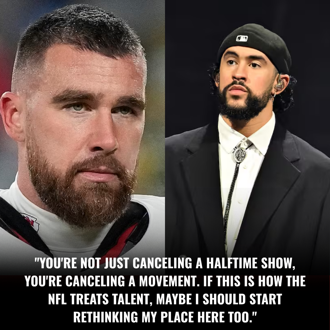 HH. SH0CK: After the NFL CANCELED Bad Bunny’s Super Bowl 2026 Performance, Kansas City Chiefs superstar Travis Kelce erupted in outrage, blasting the league for “disrespecting a global icon.” Mahomes reportedly told reporters: “You’re not just canceling a halftime show, you’re canceling a movement.