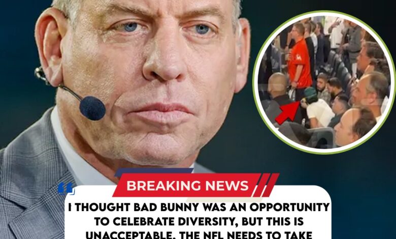 From Support to Outrage – Cowboys Legend Troy Aikman Opposes Bad Bunny’s Super Bowl 60 Performance After Refusal to Stand for “God Bless America”