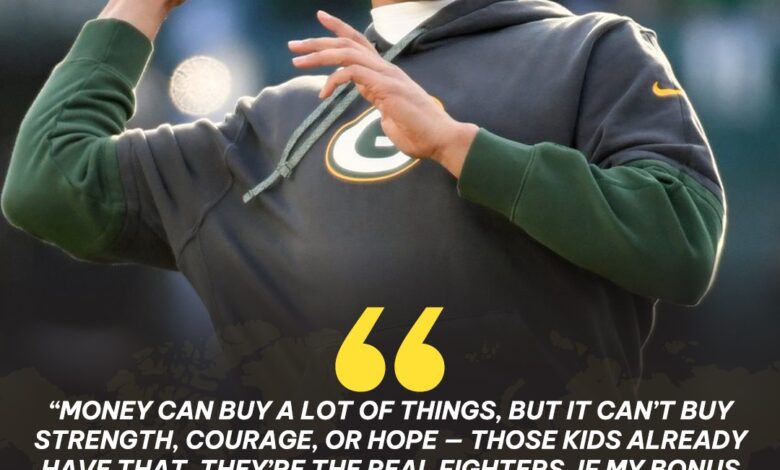 The rising NFL star announced that he’s donating his entire bonus to support over 1,000 children battling cancer in Green Bay hospitals and treatment centers. The funds will go toward covering medical costs, emotional care programs, and family support initiatives for young patients fighting for their lives.
