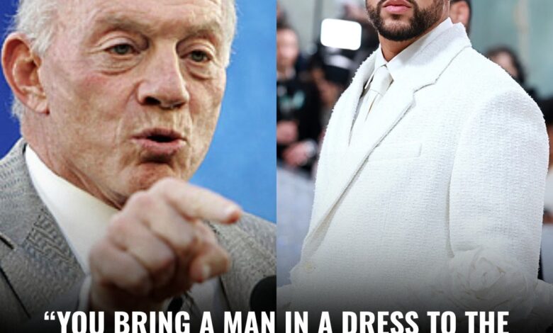 Dallas Cowboys owner Jerry Jones ignited a cultural firestorm after delivering a blistering rebuke of the idea that Bad Bunny could headline a future Super Bowl halftime show, casting the proposal as an affront to the values he believes the event should represent. In remarks that ricocheted through the sports and entertainment worlds, Jones rejected what he framed as sensational spectacle over tradition and said the league risks losing its identity if it chases controversy for attention. “You bring a man in a dress to the Super Bowl? Then stop calling it football — call it a circus,” he said, drawing swift reactions from fans, players, and industry insiders across the country.
