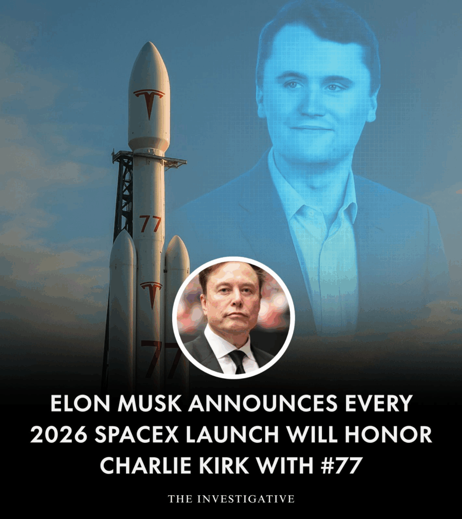 Elon Musk has never been shy about turning rocket launches into cultural moments, but his latest announcement has stunned even longtime followers. Standing before reporters, Musk revealed that every SpaceX spacecraft launched in 2026 will carry the number #77—a permanent tribute to the late conservative activist Charlie Kirk. To Musk, this wasn’t a marketing gimmick but a mission statement. “#77 is no longer just a number, but a legacy. Each rocket will soar with his spirit, a reminder that his fight for America lives among the stars,” he declared.