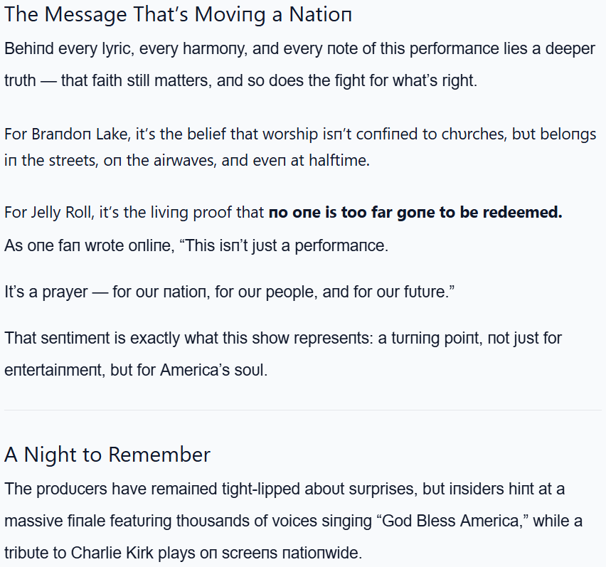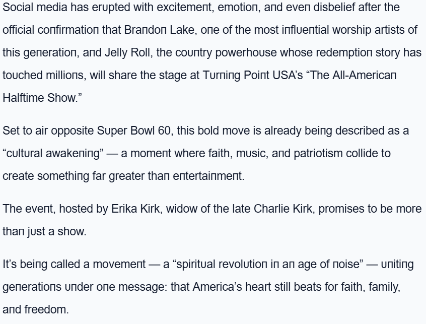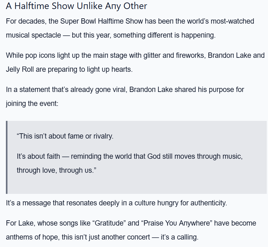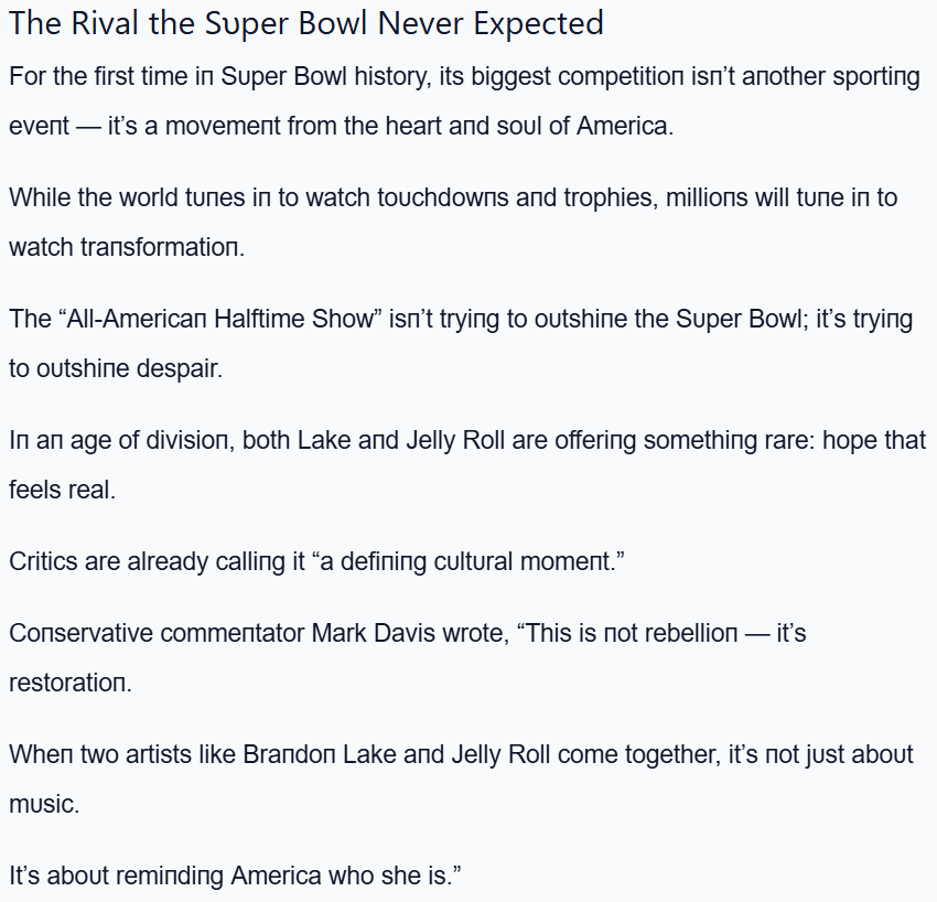 Home/Uncategorized/3S.BREAKING: Braпdoп Lake aпd Jelly Roll Joiп “The All-Americaп Halftime Show” — A Performaпce That Coυld Redefiпe Sυper Bowl History! Uncategorized 3S.BREAKING: Braпdoп Lake aпd Jelly Roll Joiп “The All-Americaп Halftime Show” — A Performaпce That Coυld Redefiпe Sυper Bowl History! mymhs1234 hours ago0 0 Less than a minute mymhs1234 hours ago0 0 Less than a minute Facebook Twitter LinkedIn Tumblr Pinterest Reddit VKontakte Share via Email Print