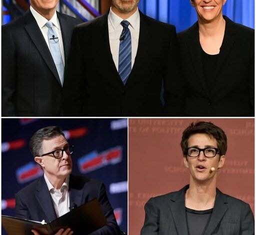 For decades, American audiences have trusted familiar faces to guide them through the nightly noise of politics, culture, and controversy. Rachel Maddow, Stephen Colbert, and Jimmy Kimmel each carved out their place in this ecosystem: Maddow as MSNBC’s intellectual anchor, Colbert as the satirist-turned-king of late-night, and Kimmel as the mainstream jester willing to spar with anyone. Together, they commanded millions of viewers and held enormous influence across the media landscape.