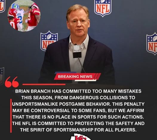 In the statement released on the morning of 10/13/2025, NFL Commissioner Roger Goodell emphasized the seriousness of the incident. The statement reads: “Brian Branch has committed too many mistakes this season, from dangerous hits to unsportsmanlike conduct after the game. This penalty may be controversial to some fans, but we affirm that there’s no place for such actions in sports. The NFL is committed to protecting the safety and sportsmanship for all players.”