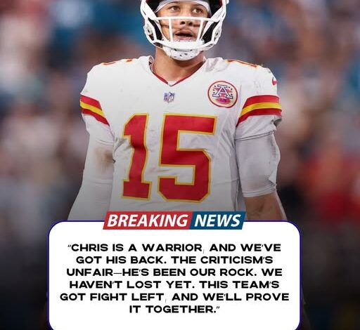 In a press conference, Mahomes rallied behind Jones, dismissing the negativity. “Chris is a warrior, and we’ve got his back,” Mahomes said. “The criticism’s unfair—he’s been our rock. We haven’t lost yet. This team’s got fight left, and we’ll prove it together.” His words aimed to unify the squad, emphasizing resilience amid a rocky start.