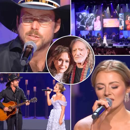 Then, from the shadows, Loretta’s granddaughter stepped forward. Emmy’s hands trembled as she held her guitar — the same model her grandmother had used decades ago. Beside her stood Lukas Nelson, the son of Willie, a man whose father had shared that sacred duet with Loretta long ago.