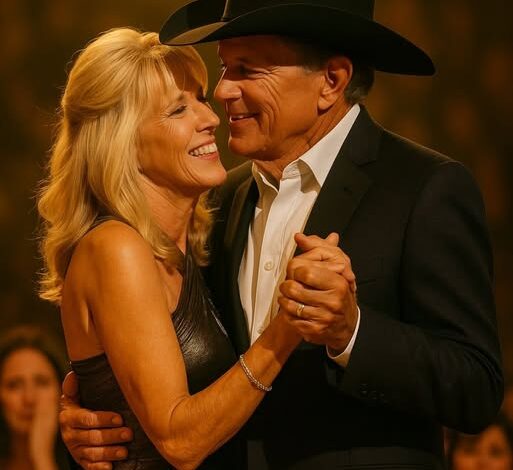 It happened under the soft glow of stage lights — the kind that seem to hold their breath before something unforgettable. George Strait, the King of Country Music, stood at center stage with his guitar resting by his side. But this moment wasn’t about music. It was about love — the kind that doesn’t fade with time, the kind that outlasts fame and distance and all the years in between.