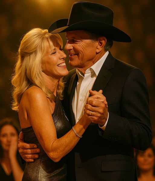 It happened under the soft glow of stage lights — the kind that seem to hold their breath before something unforgettable. George Strait, the King of Country Music, stood at center stage with his guitar resting by his side. But this moment wasn’t about music. It was about love — the kind that doesn’t fade with time, the kind that outlasts fame and distance and all the years in between.
