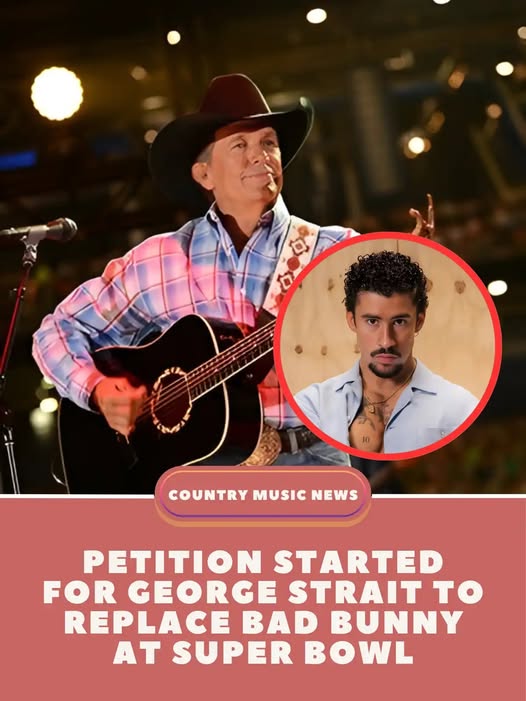 In the weeks following the NFL’s announcement that Bad Bunny would headline the 2026 Super Bowl Halftime Show, a surprising movement emerged on social media and petition platforms: fans demanding that George Strait—a country music legend—be swapped in instead. The campaign’s slogan (and petition title) is blunt: “Replace Bad Bunny in the Super Bowl Halftime Show.” Change.org