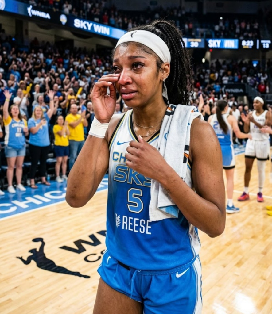In the electric roar of a sold-out WNBA arena, Chicago Sky star Angel Reese stood frozen on the hardwood, tears streaming down her face as she wiped her eyes with trembling fingers.