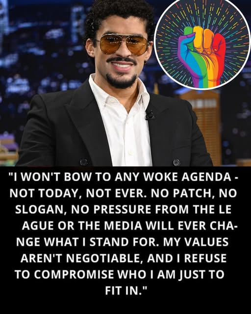 Weeks before rehearsals began, insiders say, a wardrobe meeting inside an NFL production suite spiraled into chaos. Designers unveiled the concept for his promotional shoot: a sleek outfit accented with a rainbow-themed patch, part of the league’s new inclusivity campaign. Bad Bunny took one look and quietly shook his head.