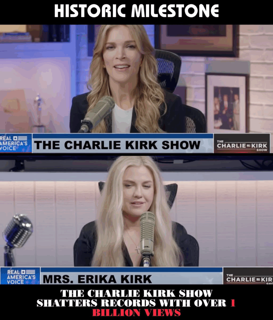 In a moment that has left the media world reeling, The Charlie Kirk Show has achieved what few believed possible — its very first episode, featuring Megyn Kelly and Erika Kirk, has officially surpassed 1 billion views worldwide. The figure, confirmed across multiple platforms, marks one of the fastest and most astonishing rises in digital broadcasting history.
