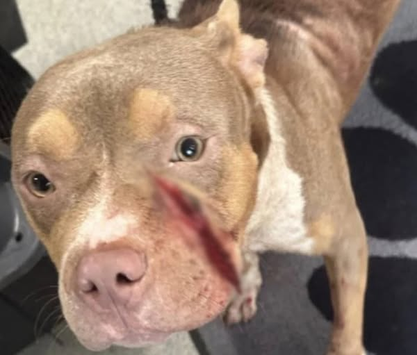 The shelter shared with us, “The entire time the dog was handled and transported, she just wagged her tail. Her injuries were serious, and it appeared that her body had been sliced with something sharp. She was immediately seen by the veterinarian where her wounds were cleaned and stitched.”