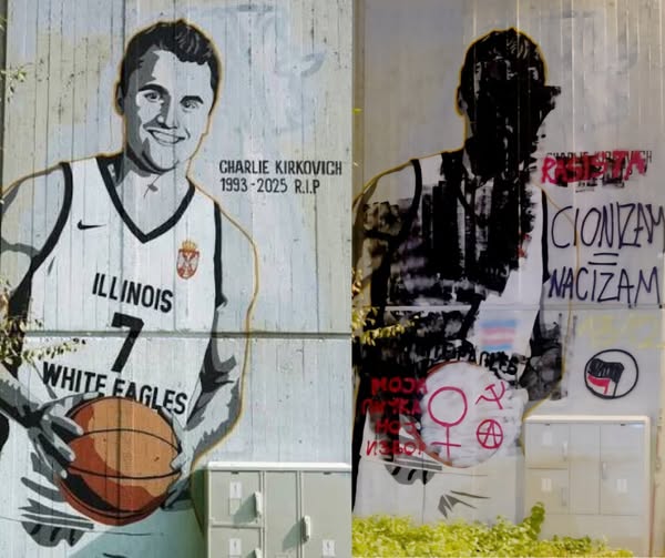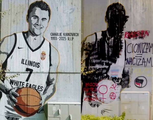 Belgrade, Serbia – A mural commemorating Serbian-American basketball player Charlie Kirkovich quickly became the center of attention and controversy when it lasted just 24 hours before being completely vandalized. The artwork was painted on a public wall in central Belgrade, in memory of Kirkovich, who recently passed away at the age of 32 (1993–2025).