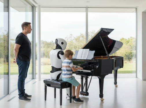 AT. 🚨 ELON MUSK SHOCKS THE WORLD: TESLA TESTS “NANNY-BOT” — A CHILD-CARING ROBOT THAT PLAYS, SUPERVISES, STUDIES, AND EVEN PLAYS PIANO WITH HIS SON! 🚨