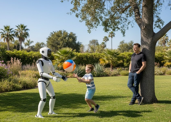🎯 MUSK’S FICTIONAL AMBITION: “IF IT CAN TAKE CARE OF A CHILD, IT CAN DO ANYTHING.”