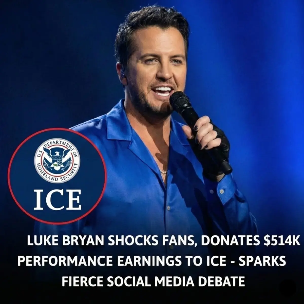 Luke Bryan is once again at the center of a national conversation — but this time, it has nothing to do with chart-topping singles, sold-out stadiums, or televised talent shows. According to reports now circulating widely across social media and entertainment news circles, the country music superstar has donated his entire earnings from a recent high-profile appearance — a reported $514,000 — to U.S. Immigration and Customs Enforcement (ICE.