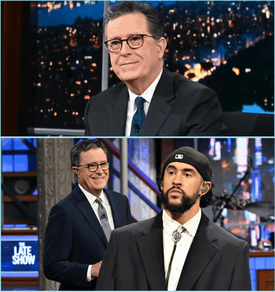 From there, the conversation deepened. They spoke about the pressures of fame, the courage to remain authentic, and Bad Bunny’s decision to perform exclusively in Spanish despite his global success. “It’s not a choice,” he said simply. “It’s who I am.” Colbert smiled, visibly moved. “That,” he said, “is the most American thing I’ve ever heard.”