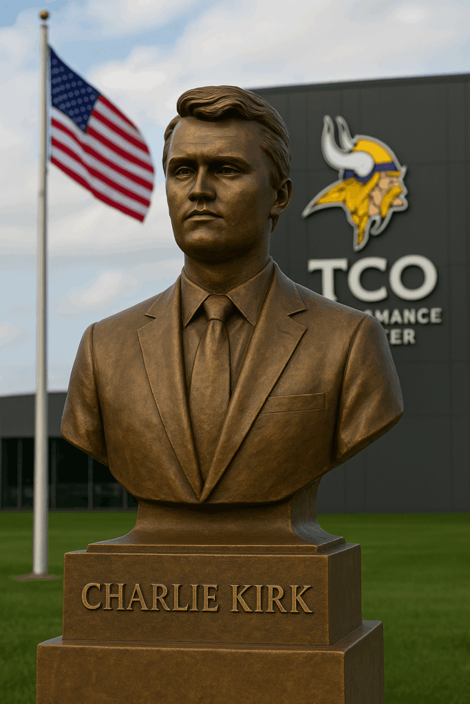 Minnesota is in turmoil — and this time, it’s not because of J.J. McCarthy or Justin Jefferson. According to an exclusive report from Minneapolis, the Minnesota Vikings have just spent $5 million to erect a statue of political commentator Charlie Kirk on the grounds of their TCO Performance Center, as a symbol of “American will and faith.”