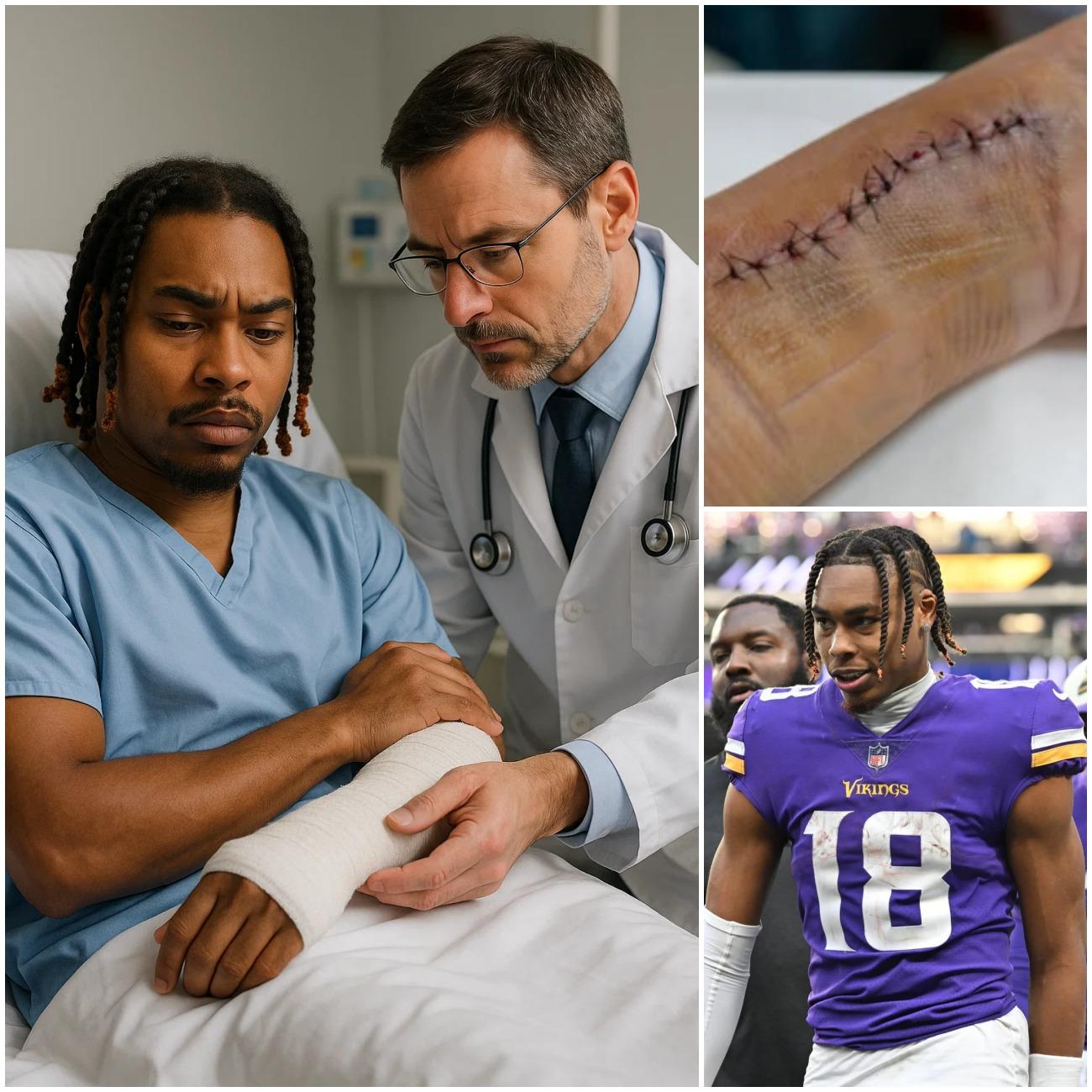 Justin Jefferson has never been one to seek attention off the field he’s always let his game do the talking every catch every touchdown every impossible sideline grab told its own story but this week for the first time in months the Minnesota Vikings superstar spoke up not as a highlight machine not as the face of a franchise but as a man dealing with pain and vulnerability following a surgery that has left fans holding their breath Jefferson’s message wasn’t loud it wasn’t rehearsed it was quiet raw and heartbreakingly real