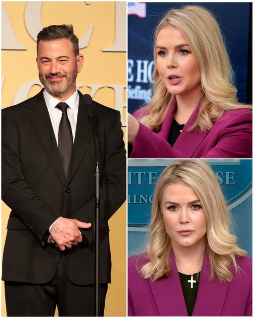It began under the relentless glare of studio lights — the kind of lights that don’t just illuminate, but interrogate. On that night, the stage of Jimmy Kimmel Live! was less a talk-show set than a crucible, and Karoline Leavitt — the rising conservative firebrand — strode onto it as if it belonged to her.