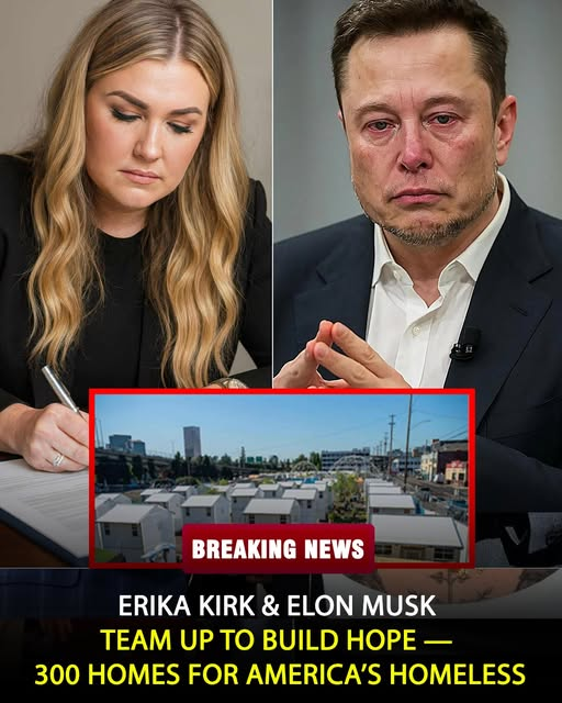 The news broke quietly at first — a single press release buried beneath the noise of a busy news cycle. But within hours, it became impossible to ignore. Erika Kirk, widow of the late Charlie Kirk, had just signed a $50 million partnership with Elon Musk to build 300 homes for the homeless and forgotten.