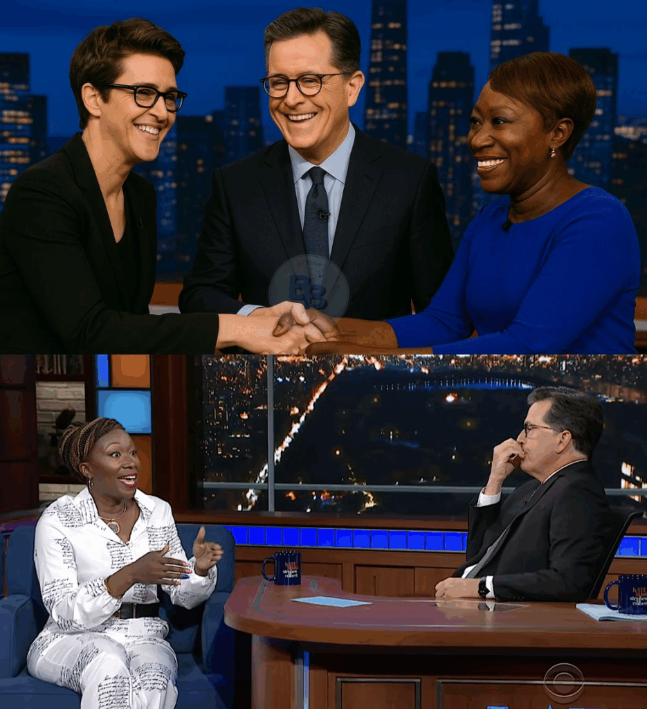 And she’s not alone. Standing by her side are Stephen Colbert and Joy Reid — two names synonymous with bold commentary and unflinching satire. Together, this trio has kicked off what insiders are calling nothing less than a “news revolution.”