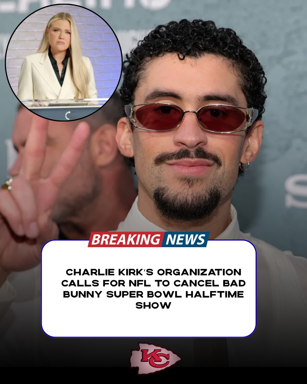 BE.Charlie Kirk’s Organization Calls for NFL to Cancel Bad Bunny Super Bowl Halftime Show