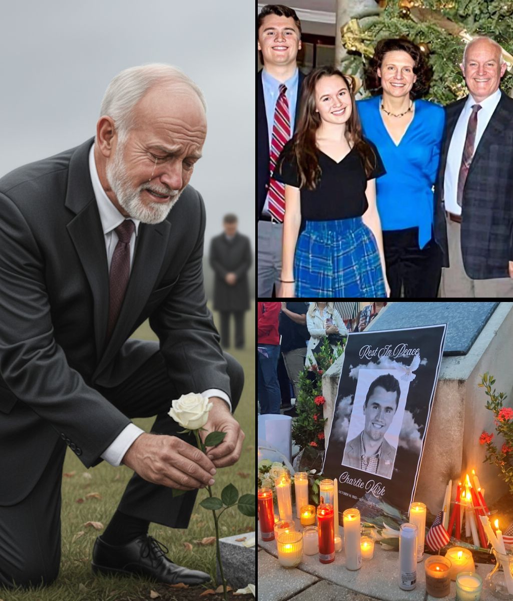 In life, there are moments of pain relief that even the most steel-hearted must apply. One of the most touching scenes was recently witnessed at the cemetery where Charlie Kirk – the famous young activist – rested, which made everyone present feel sweet. Charlie’s father, with trembling hands and tears streaming down his face, placed a single white rose on his son’s gravestone, then whispered his last words that no one could hear clearly. Just a few seconds later, he fell to his knees, making the surrounding atmosphere suffocate, so heavy that it was difficult to breathe.
