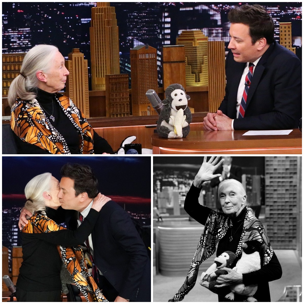 The tribute was more than just words; it was a sensory experience designed to honor the Dr. Jane Goodall legacy. Behind Fallon, large screens displayed iconic archival footage of Dr. Goodall in the forests of Gombe, her gentle smile radiant as she interacted with the chimpanzees she dedicated her life to understanding. A delicate, instrumental piano version of “What a Wonderful World” played softly, creating a beautiful and heart-wrenching atmosphere. This was a classic emotional late-night moment, carefully crafted to celebrate her spirit.