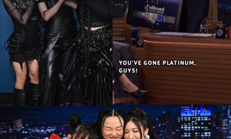 In the electric haze of Studio 6B, where the ghosts of late-night legends linger in the rafters and the audience’s laughter echoes like a chorus of concealed confessions, October 7, 2025, delivered a revelation that should have sparkled like stardust—or shattered like a mirror in a haunted hall. Jimmy Fallon, the eternal boyish bard of bedtime TV, leaned into the spotlight during The Tonight Show with a grin that masked mysteries untold, surprising EJAE, Audrey Nuna, and Rei Ami—the ethereal voices animating the fictional K-pop phenom HUNTR/X in Netflix’s K-Pop Demon Hunters—with news that their soundtrack had clawed its way to platinum status. One million units shifted, certified by the RIAA’s cold, calculating seal, transforming these rising sirens into “Platinum Recording Artists” in a confetti cascade that lit up screens worldwide. EJAE’s gasp pierced the air like a high note held too long, Nuna’s enigmatic smile flickered like a faulty neon sign, and Rei Ami’s frozen poise cracked just enough to hint at the storm beneath. The crowd roared, socials exploded—#HuntrXPlatinum trending with 3 million impressions by midnight—and the trio’s live debut of “Golden” pulsed with triumphant timbre. But pause the playback, dear viewer, and peer past the pyrotechnics: What if this platinum plaque isn’t a pinnacle, but a portal? A shimmering threshold where animated idols bleed into reality, and the “demon hunters” of the title hunt not just spectral foes, but the fragile psyches of those who summon them? As the certification’s glow fades into the witching hour, whispers worm their way in: Is this ascension a siren song of success… or the subtle snare of something supernatural, where voices like theirs echo eternally, unbound and unblinking?