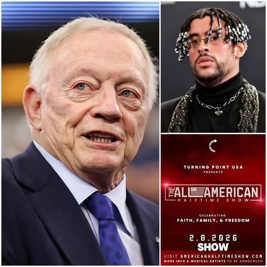 In a stunning act of defiance thatâs shaking the worlds of sports and entertainment, Dallas Cowboys owner Jerry Jones has announced a $10 million partnership with Turning Point USA to launch what heâs calling the âFaith & Freedom Halftime Showâ â a full-scale patriotic concert set to air at the exact same time as the NFLâs official Super Bowl LX halftime headlined by Bad Bunny.