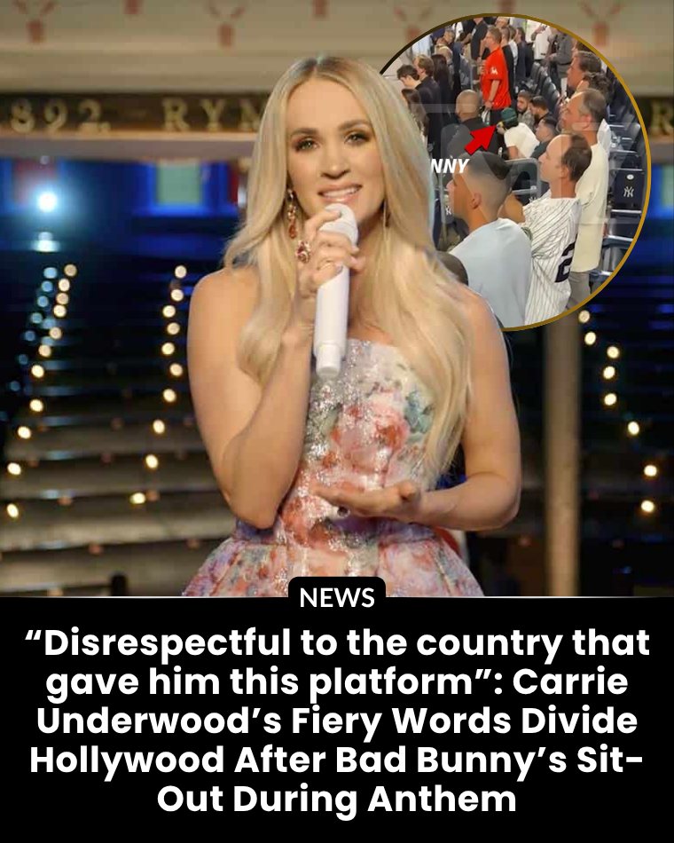 Country music superstar Carrie Underwood has once again demonstrated her deep patriotism, this time responding firmly to a controversial moment at a recent New York Yankees game. During Tuesday night’s event, global music icon Bad Bunny surprised fans by staying seated during the singing of “God Bless America,” sparking widespread discussion about respect and national pride.