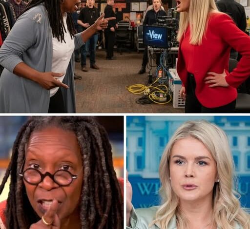 The studio froze. The co-hosts’ faces stiffened. Cameras flicked, capturing every micro-expression. And in that pregnant silence, Whoopi Goldberg, seated several seats away, delivered a reply so sharp yet so poised that it instantly went viral — a single sentence that left Leavitt speechless, face drained, spirit faltering.