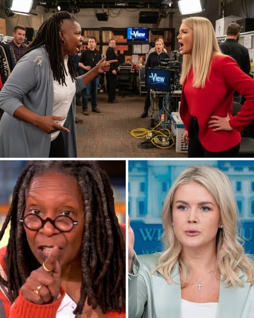 The studio froze. The co-hosts’ faces stiffened. Cameras flicked, capturing every micro-expression. And in that pregnant silence, Whoopi Goldberg, seated several seats away, delivered a reply so sharp yet so poised that it instantly went viral — a single sentence that left Leavitt speechless, face drained, spirit faltering.
