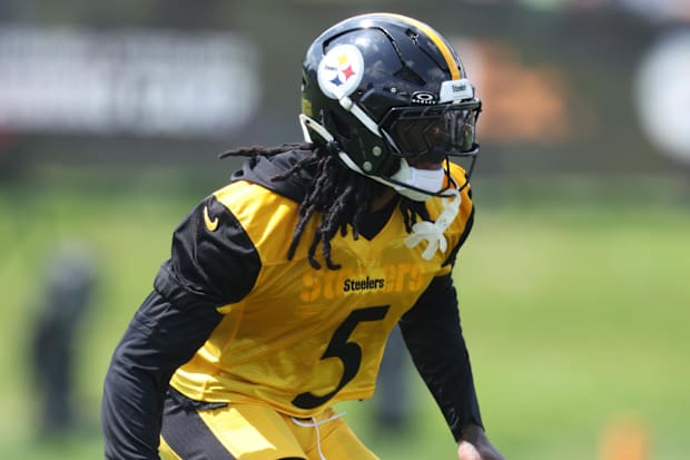 - Jul 24, 2025; Latrobe, PA, USA; Pittsburgh Steelers cornerback Jalen Ramsey (5) participates in drills during training camp at Saint Vincent College. Mandatory Credit: Charles LeClaire-Imagn Images / Charles LeClaire-Imagn Images