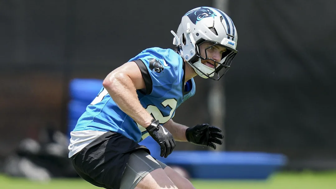 - Jun 11, 2025; Charlotte, NC, USA; Carolina Panthers safety Jack Henderson (20) back peddles during minicamp at Bank of America Stadium. Mandatory Credit: Jim Dedmon-Imagn Images / Jim Dedmon-Imagn Images