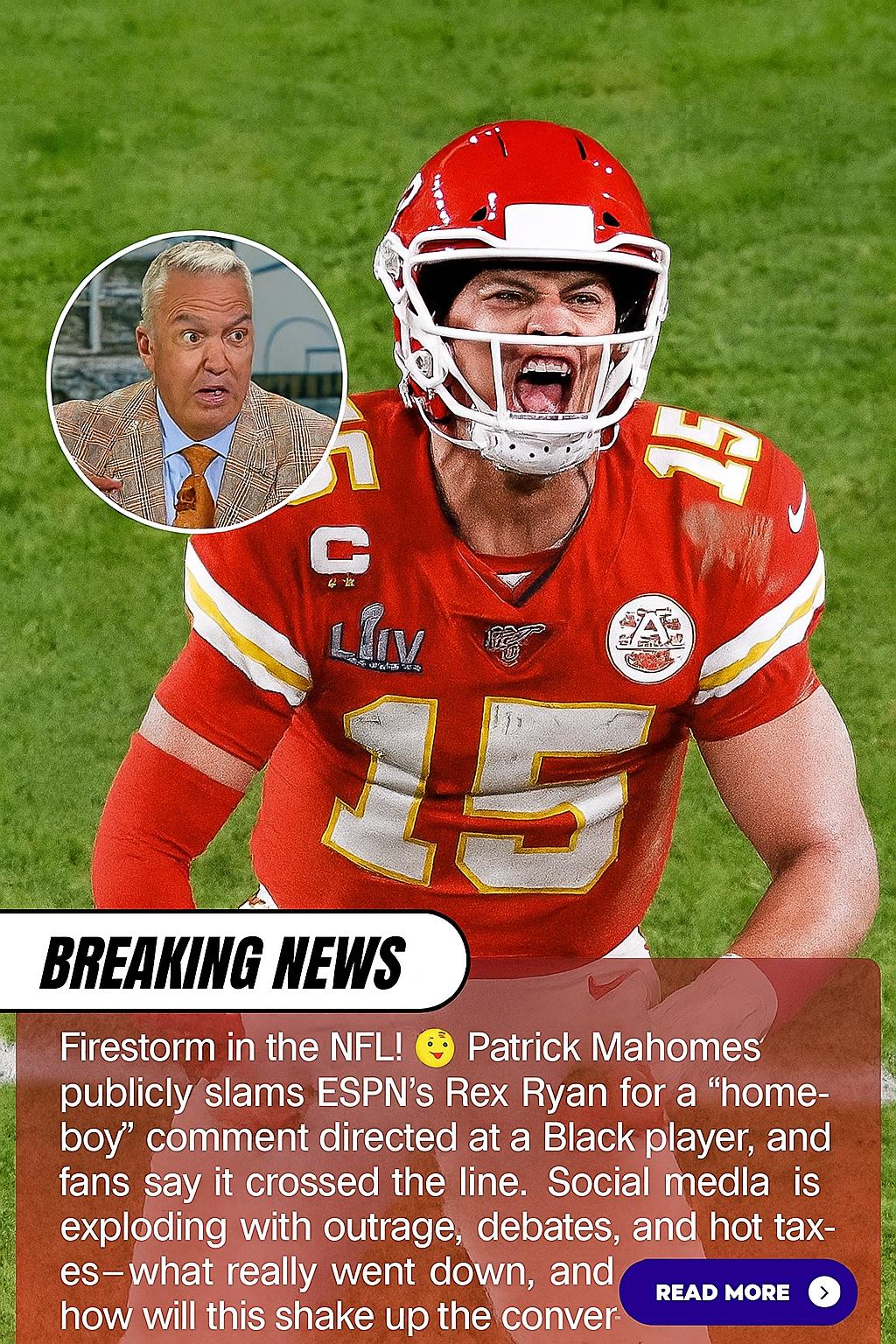 Kansas City, MO – The NFL community is reeling after superstar quarterback Patrick Mahomes of the Kansas City Chiefs publicly and fiercely denounced ESPN analyst Rex Ryan, calling him an “asshole” for using a racially charged term toward a Black player during a live television broadcast.