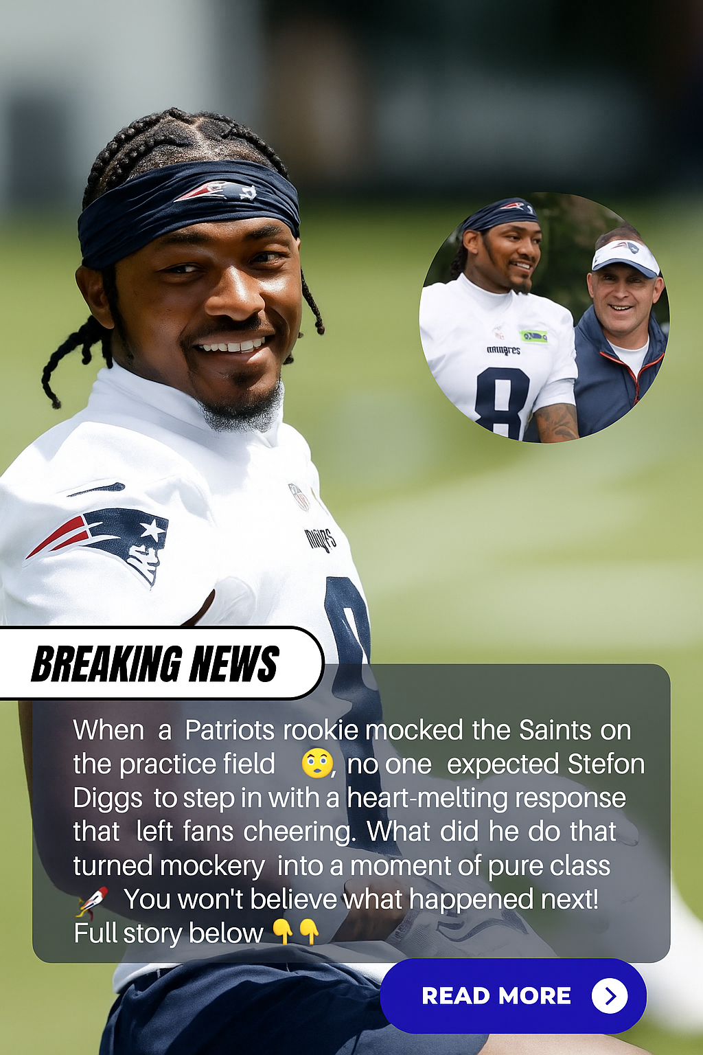 The practice field fell silent. All eyes turned to Diggs—who, in less than a year with the team, has already brought the aura of a true leader. With his confident demeanor, sharp words, and professional mindset, Diggs showed he didn’t come to Foxborough just to catch passes but to inspire.