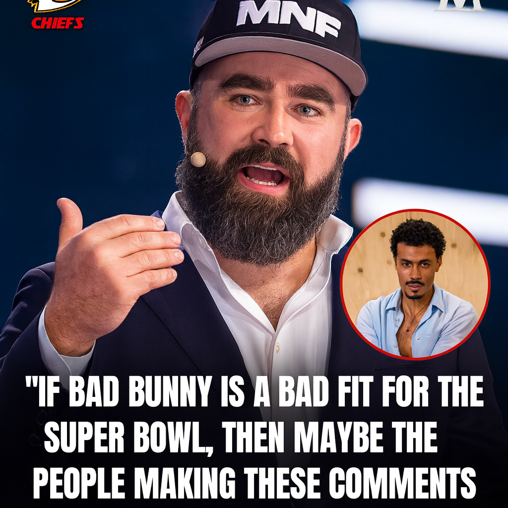 “If Bad Bunny isn’t a good fit for the Super Bowl,” Kelce said, his voice calm but firm, “then maybe the people making those comments aren’t a good fit for America’s future.”