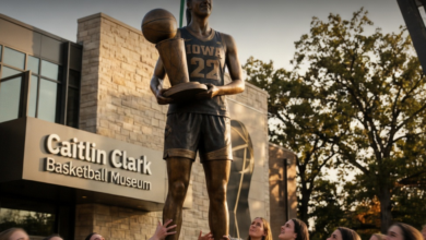The bronze giant stands tall outside the newly opened Caitlin Clark Basketball Museum in Iowa City, but not everyone is…
