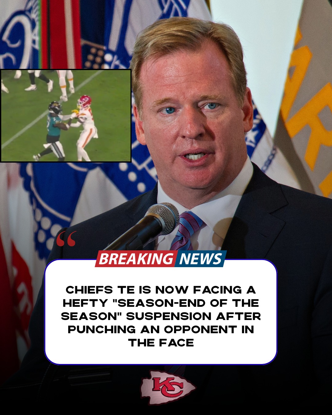 In one of the most explosive and jaw-dropping moments of the NFL season, a Kansas City Chiefs tight end has reportedly received a season-ending suspension after landing a punch square across an opponent’s face — a move that has sent shock waves across the league.